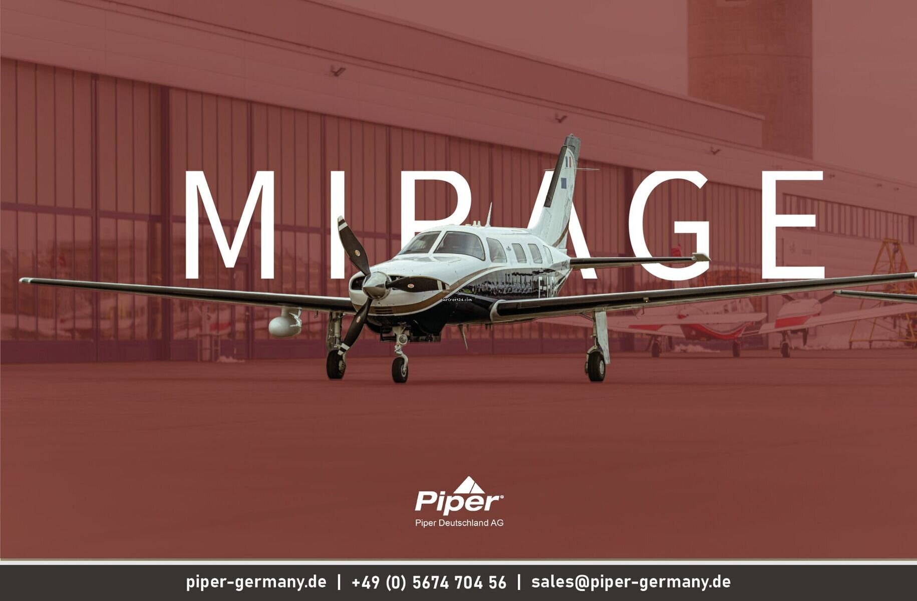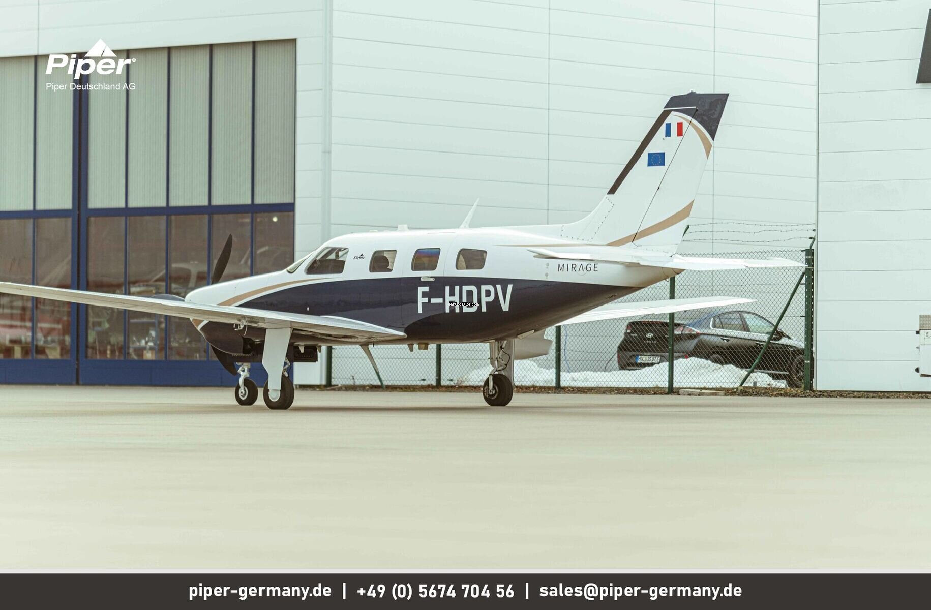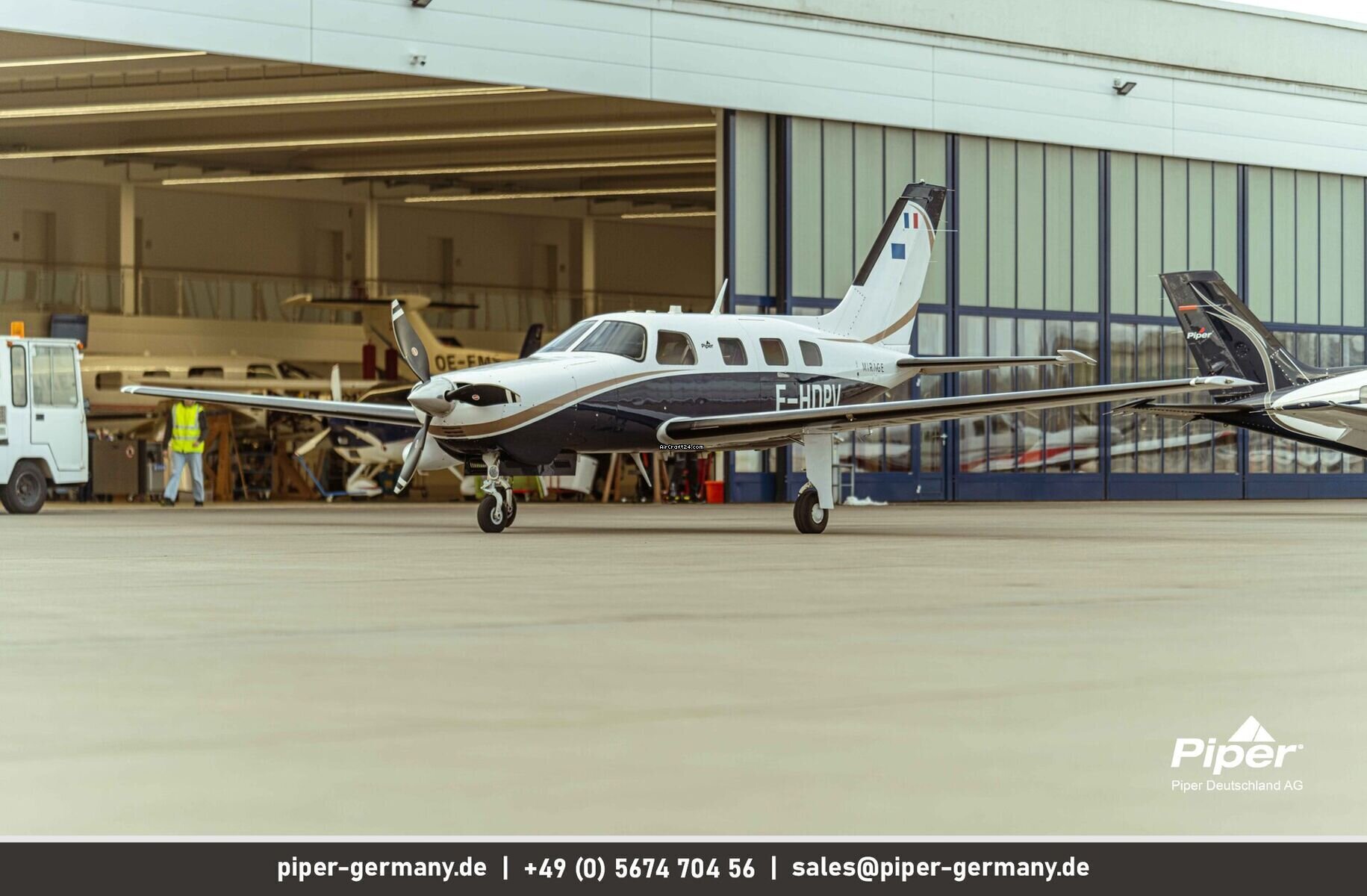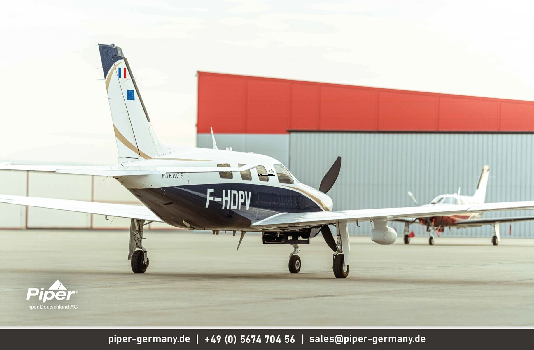 | Vista general | | Tipo: | Monomotor | | Fabricante: | Piper | | Modelo: | PA-46-350P Mirage | | Año de construcción: | 2014 | | Reg-No.: | F-HDPV | | No. serial: | 4636624 | | Cualidades: | IFR autorizado IFR equipado Siempre en hangar | | Ultimo chequeo annual: | 8/2025 | | Lugar: | Francia, Lille, LFQQ | | Tiempo total (TTAF): | 998 h | | Precio: | US$ 1.010.310 (~ € 876.625) | | Precio Neto: | € 736.659 US$ 849.000 | | Impuesto según UE: | sí | | Número de pasajeros: | 6 | | Aterrizajes: | 975 |