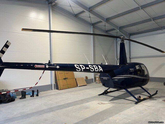 | Vista general | | Tipo: | Helicóptero (Motor a pistón) | | Fabricante: | Robinson | | Modelo: | R44 II | | Año de construcción: | 2022 | | Reg-No.: | SP-SBA | | No. serial: | 14539 | | Cualidades: | Siempre en hangar | | Ultimo chequeo annual: | 1/2026 | | Lugar: | Polonia, Gdynia | | Tiempo total (TTAF): | 270 h | | Precio: | zł 3.000.000 (~ € 713.725) | | Impuesto según UE: | sí | | Número de pasajeros: | 4 |