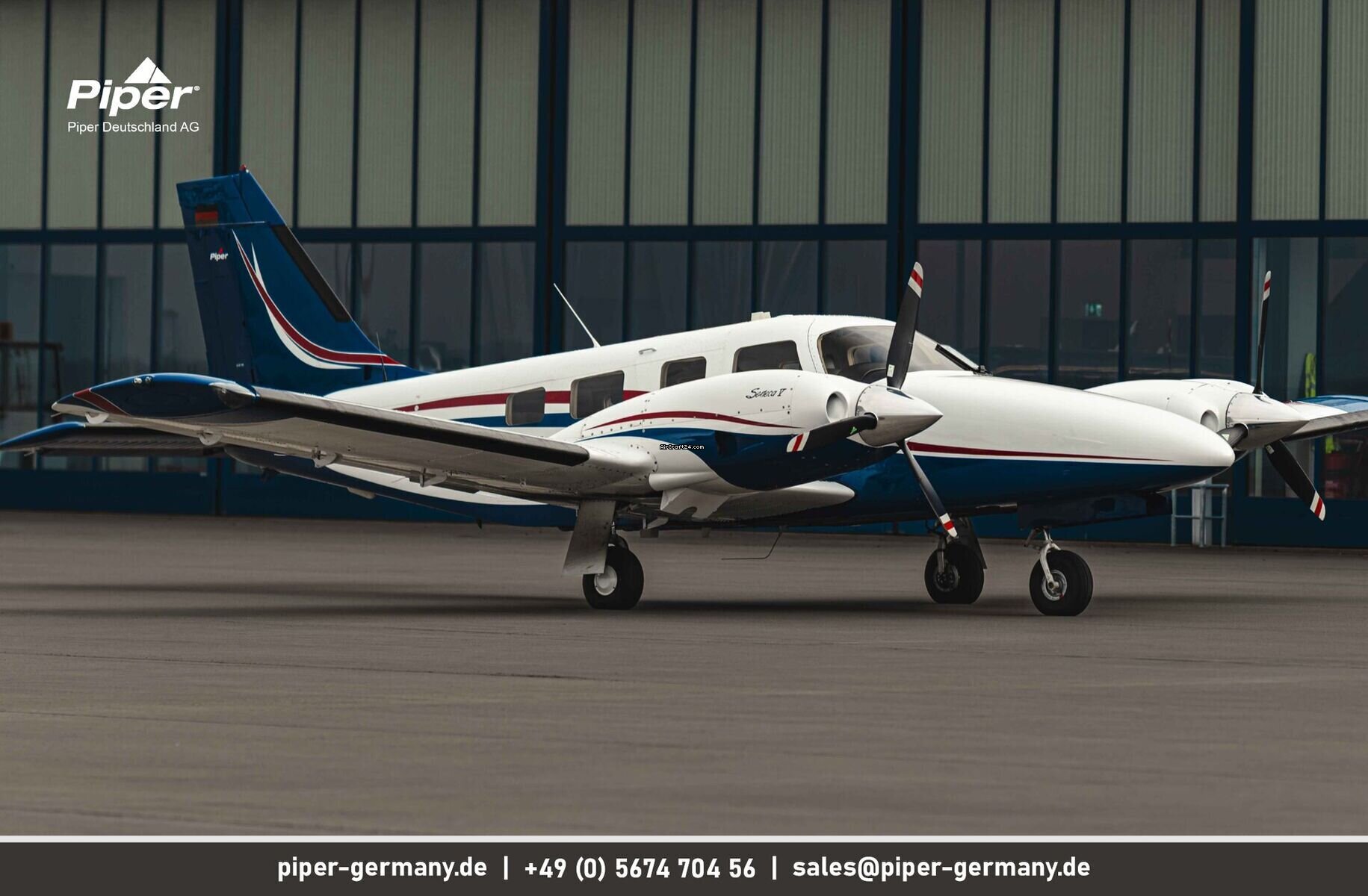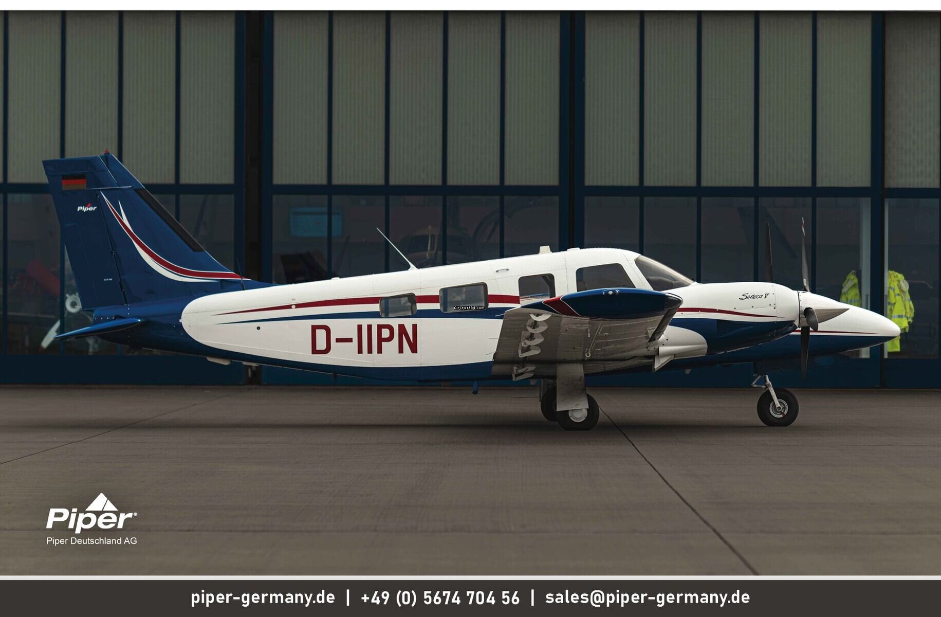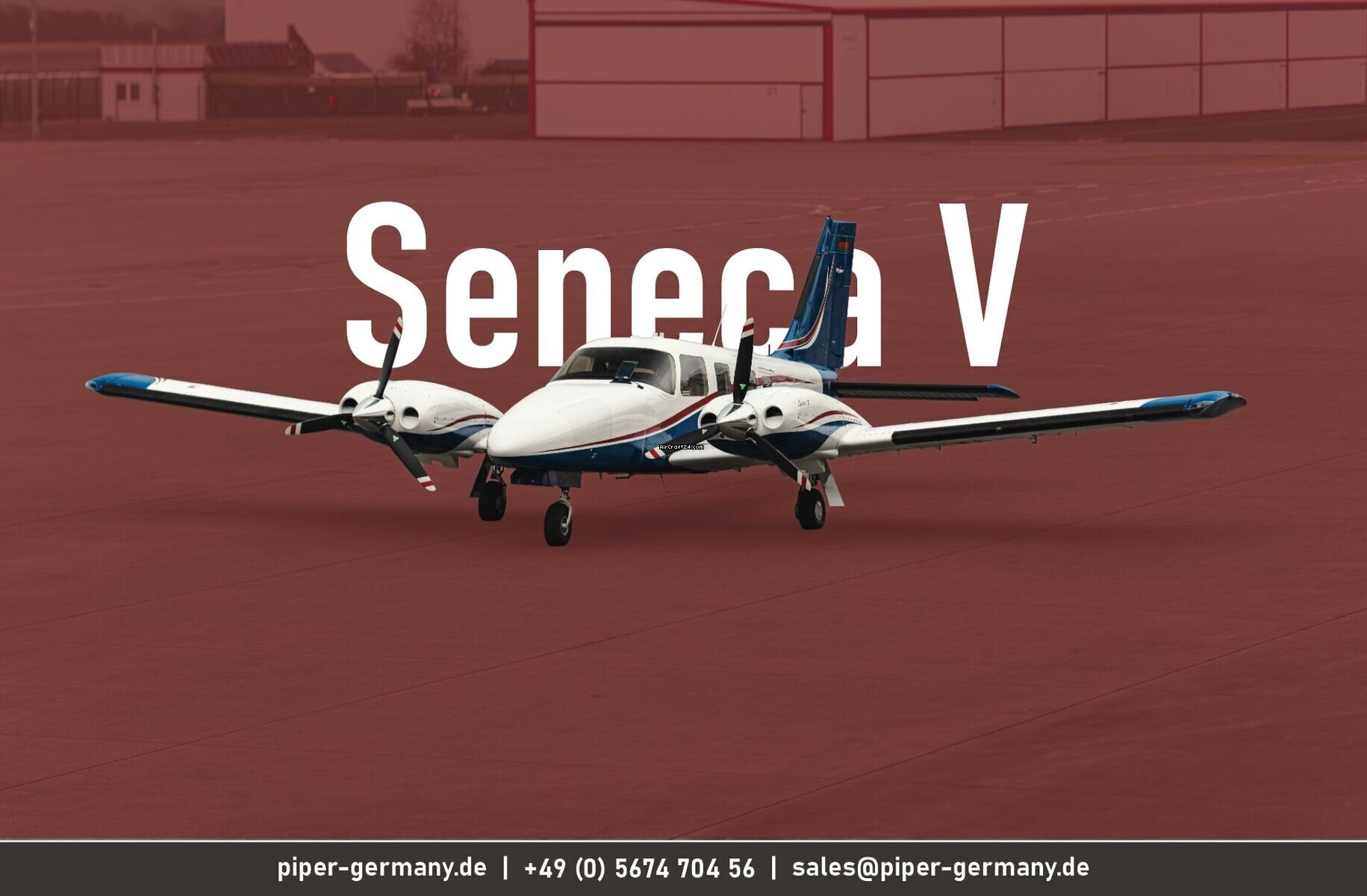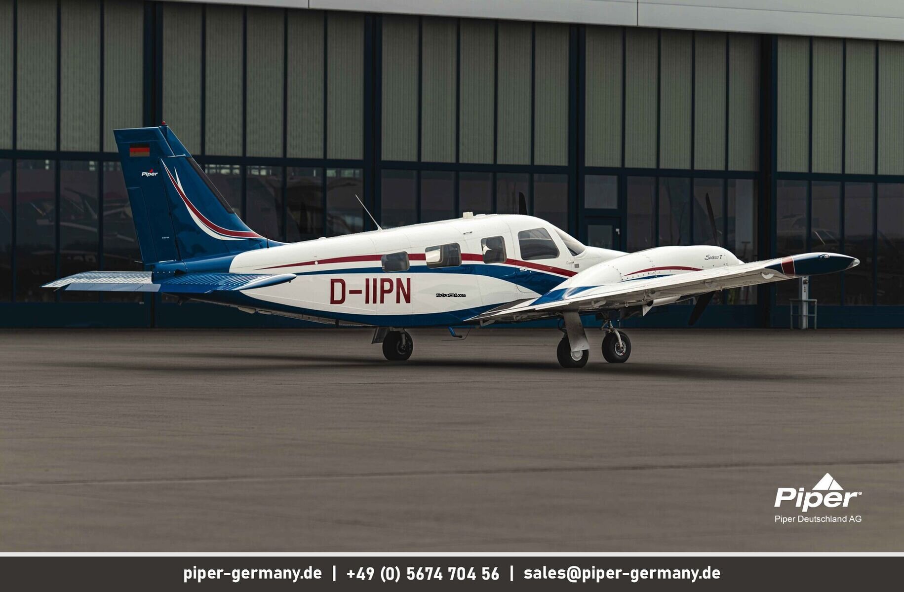 | Vista general | | Tipo: | Multimotor | | Fabricante: | Piper | | Modelo: | Seneca V | | Año de construcción: | 2013 | | Reg-No.: | D-IIPN | | No. serial: | 3449483 | | Cualidades: | IFR autorizado IFR equipado | | Lugar: | Alemania, Sankt Peter-Ording | | Tiempo total (TTAF): | 1650 h | | Precio: | US$ 785.000 (~ € 681.128) | | Precio Neto: | € 681.128 US$ 785.000 | | Impuesto según UE: | sí | | Número de pasajeros: | 6 | | Aterrizajes: | 1590 |